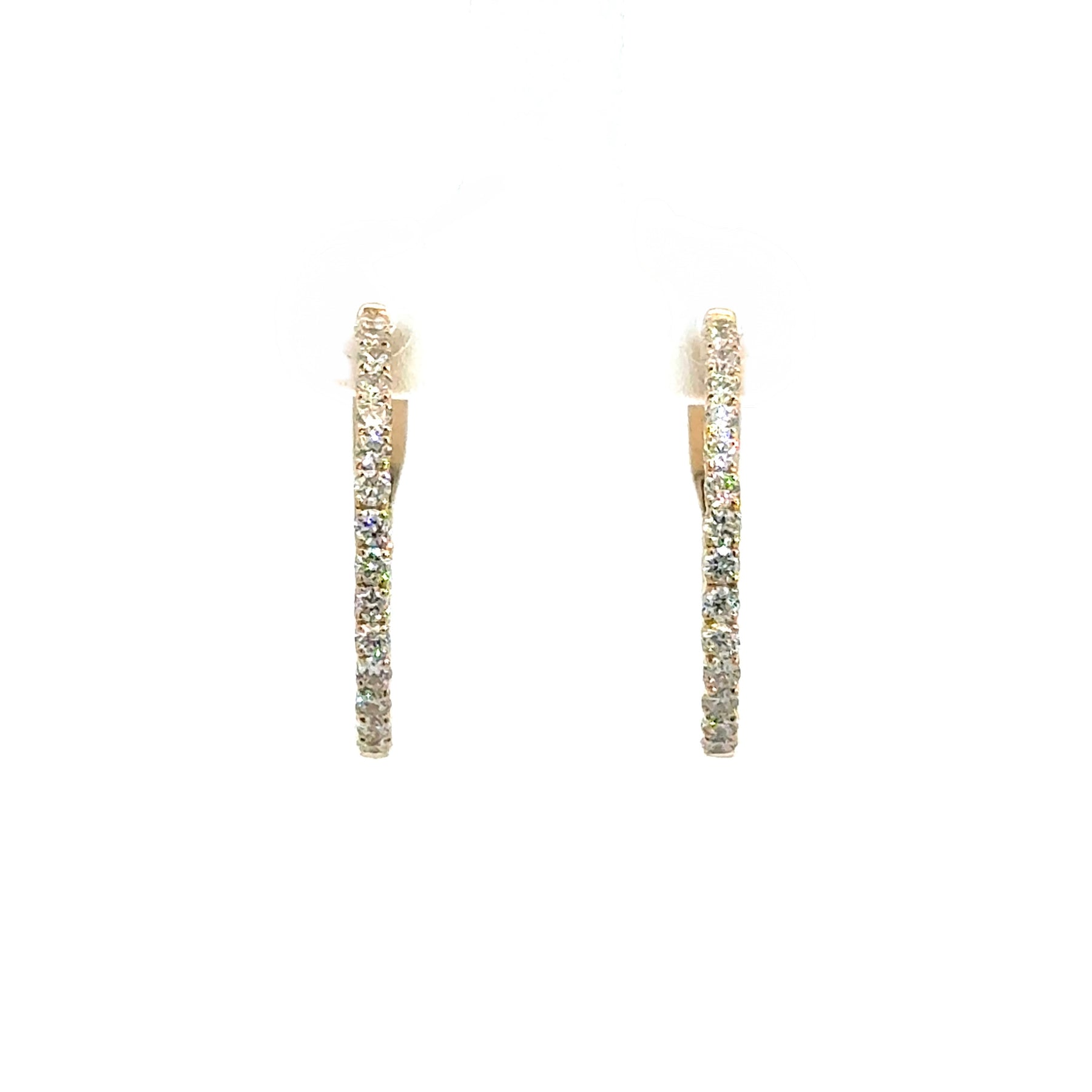 14K Yellow Gold Round Diamond Hoop Earrings