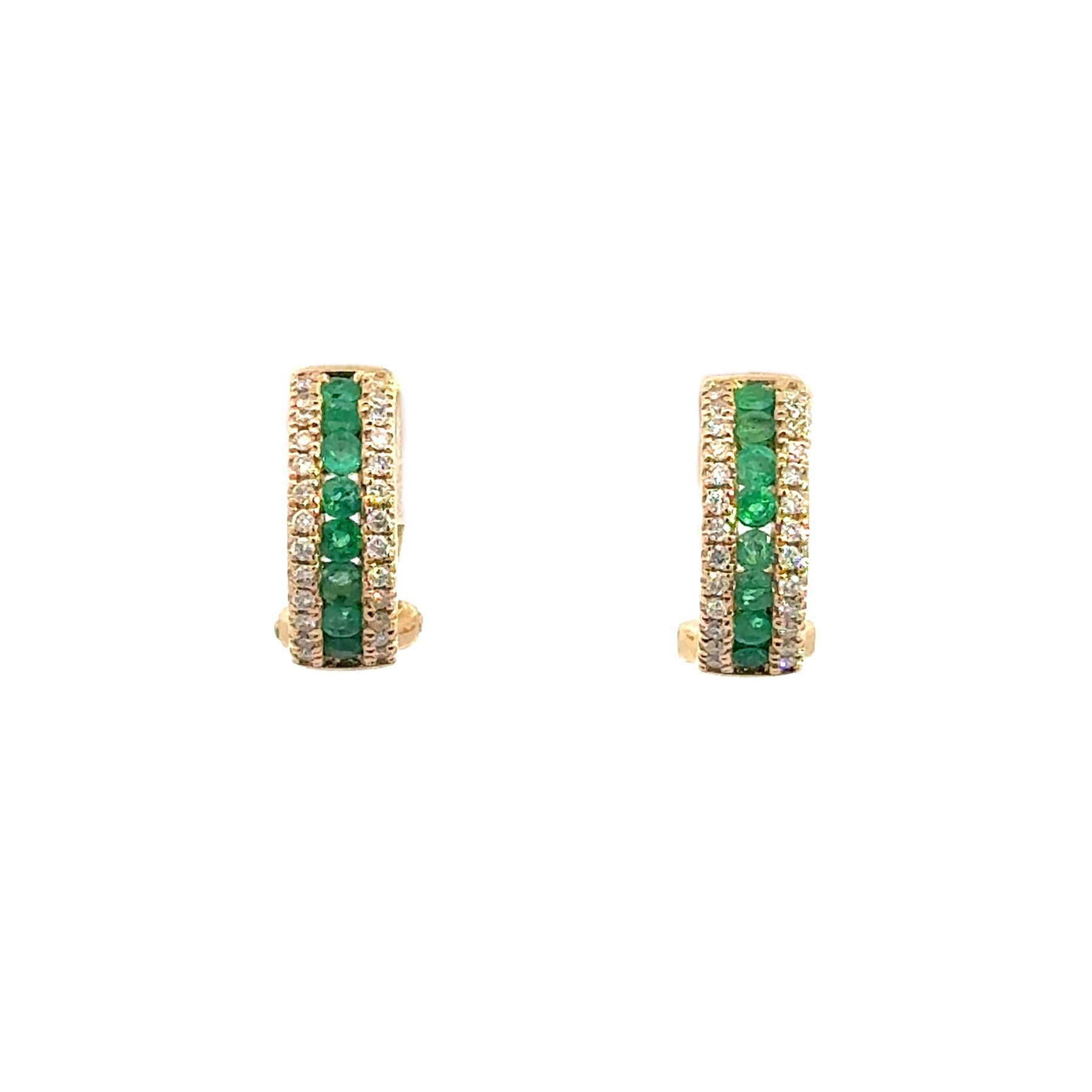 14k Yellow Gold Emerald and Diamond Round Hoop Earrings