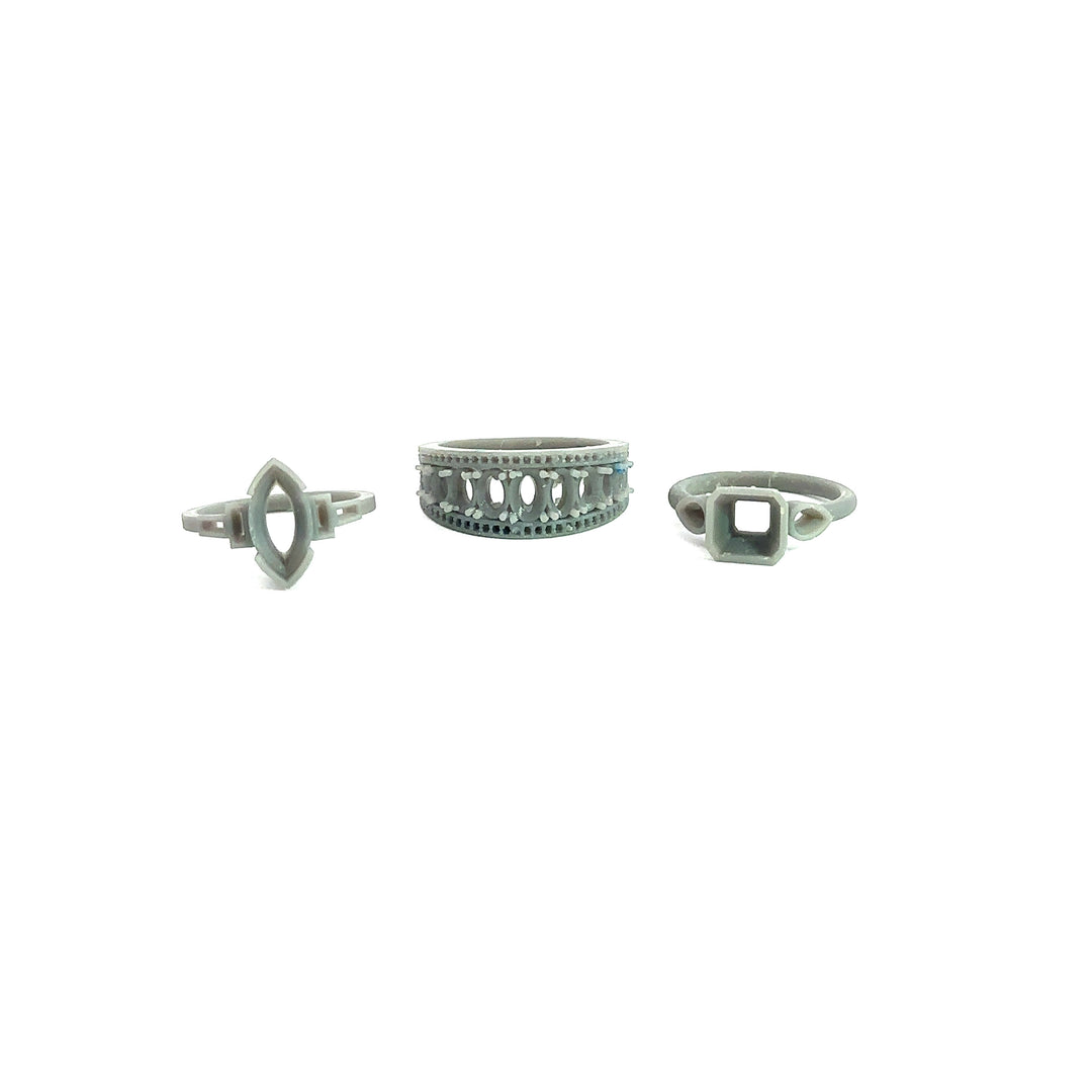 Our internal manufacturing process involves molding your jewelry from a plastic prototype using wax. We create a 3D printed replica for you to come see and try on before we move to the casting process.